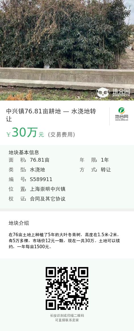 在76亩土地上种植了5年的大叶冬青树,高度在1.5米-2米,有5万多棵,市场价12元一颗,现在一共30万。土地可以续约,一年每亩1500元。